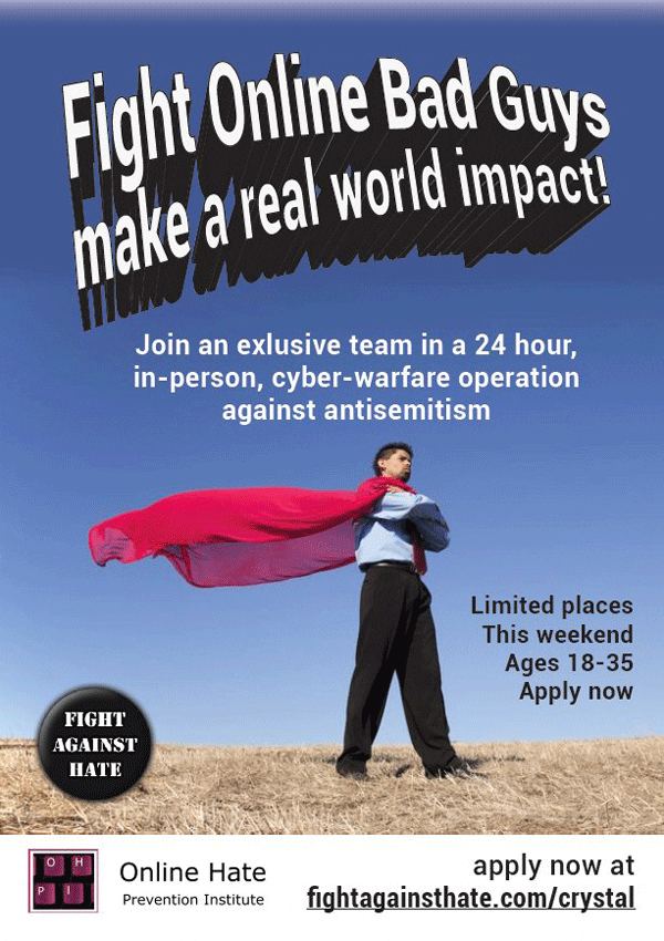 Experts from the Online Hate Prevention Institute will provide training, and work with participants to track down online antisemitic content in social media from the far right, the far left, antisemitic terrorist groups (e.g. Hamas), and more. The items that are found will be reported to OHPI’s “Fight Against Hate Software”.