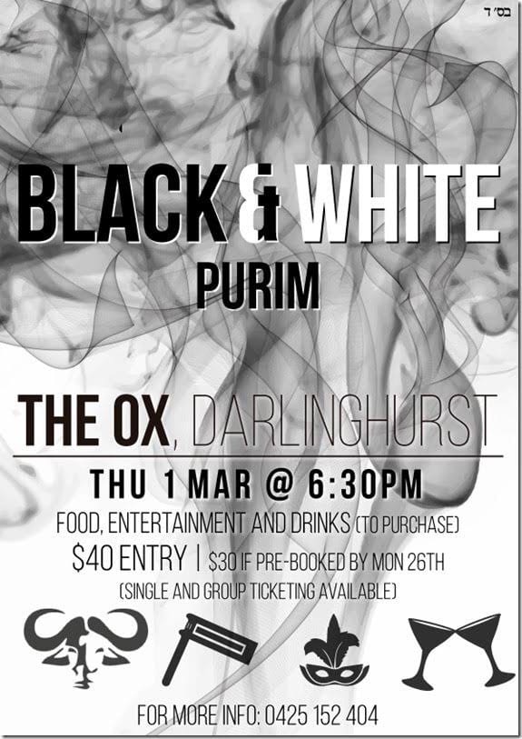 With a classy and elegant ‘Black and White’ purim theme, a full kosher buffet dinner, drinks as well as entertainment, this party is sure to be a crowd pleaser.