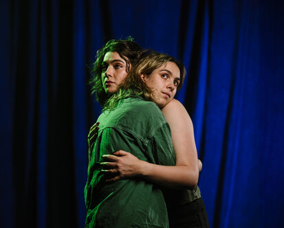 Still, the staging (the set design is by Ella Campbell) is alluring. When you enter the theatre, both actors are already in place.