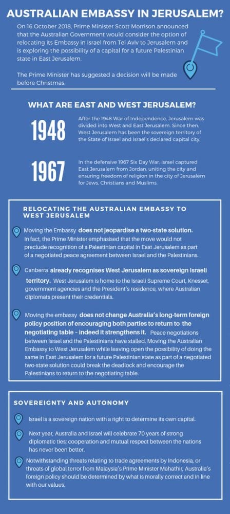 Given the extent of the misinformation circulated in relation to the proposed move of Australia’s embassy to West Jerusalem, the Zionist Federation of Australia has today distributed the attached fact sheet to members of Parliament and other relevant Government agencies.