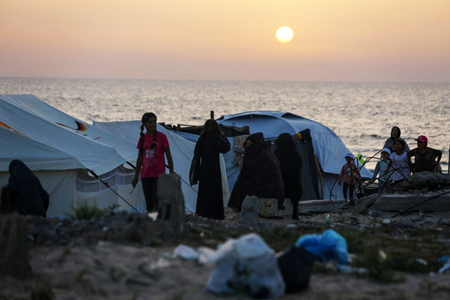 Displaced Palestinians in a tent city in Deir al-Balah on May 9, 2024. Photo by Majdi Fathi/TPS-IL